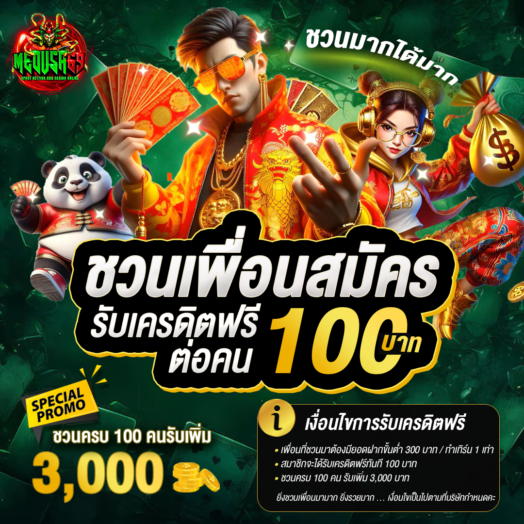 – ชวนครบ 100 คน รับเพิ่ม 3,000 บาท สามารถแจ้งรับสิทธิ์ผ่านที่ไลน์ @Medusa69