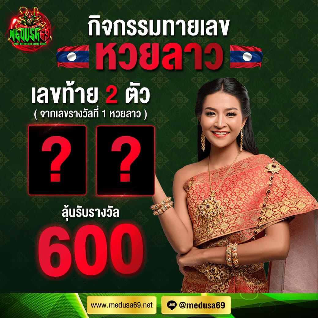 ร่วมลุ้นสนุกทายผลหวยลาวเลข 2 ตัวท้ายรางวัลที่ 1 ลุ้นรับเงินสด 600 บาท (ต่อหนึ่งท่าน)